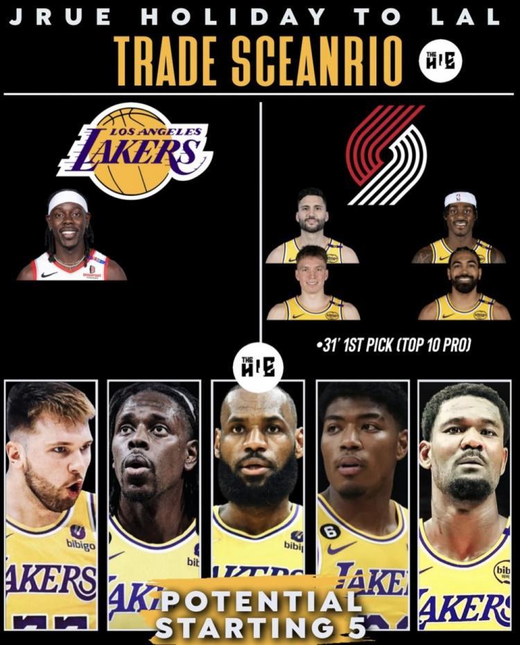 此前,据多家媒体记者报道,湖人已经重启补强计划,将寻求各种能提升球队竞争力的机会。今日,美媒建议湖人可以去追求开拓者后卫朱霍勒迪,并给出了5换1方案,具体为:湖人出克内克特、范德比尔特、文森特、克勒贝尔和31年首轮签(前十顺位保护)换霍勒迪。现年35岁的霍勒迪上赛季常规赛代表凯尔特人出战62场,场均上场30.6分钟得到11.1分4.3篮板3.9助攻1.1抢断,今夏霍勒迪被凯尔特人交易到了开拓者。