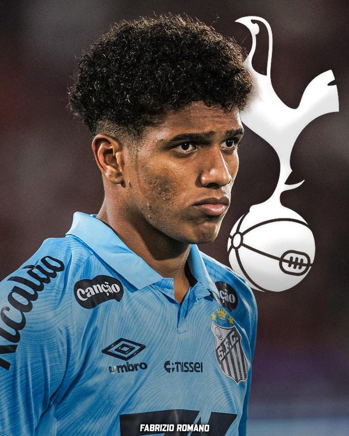 据知名记者罗马诺消息,热刺即将完成从桑托斯签下18岁左后卫索萨的交易。