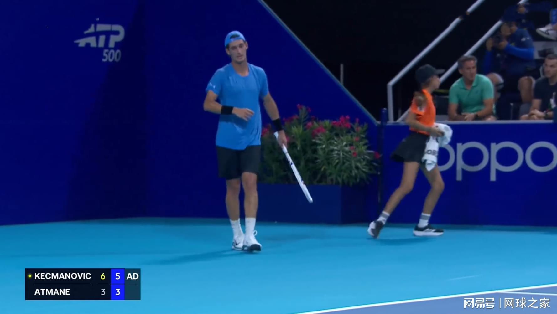 面对阿特马内的表现,主裁判及时提醒他尽快做好接发球准备,但这位法国球员嘴上说知道了知道了,却不紧不慢地走到旁边拿毛巾擦汗。面对这一幕,主裁判果断给了阿特马内一次警告。