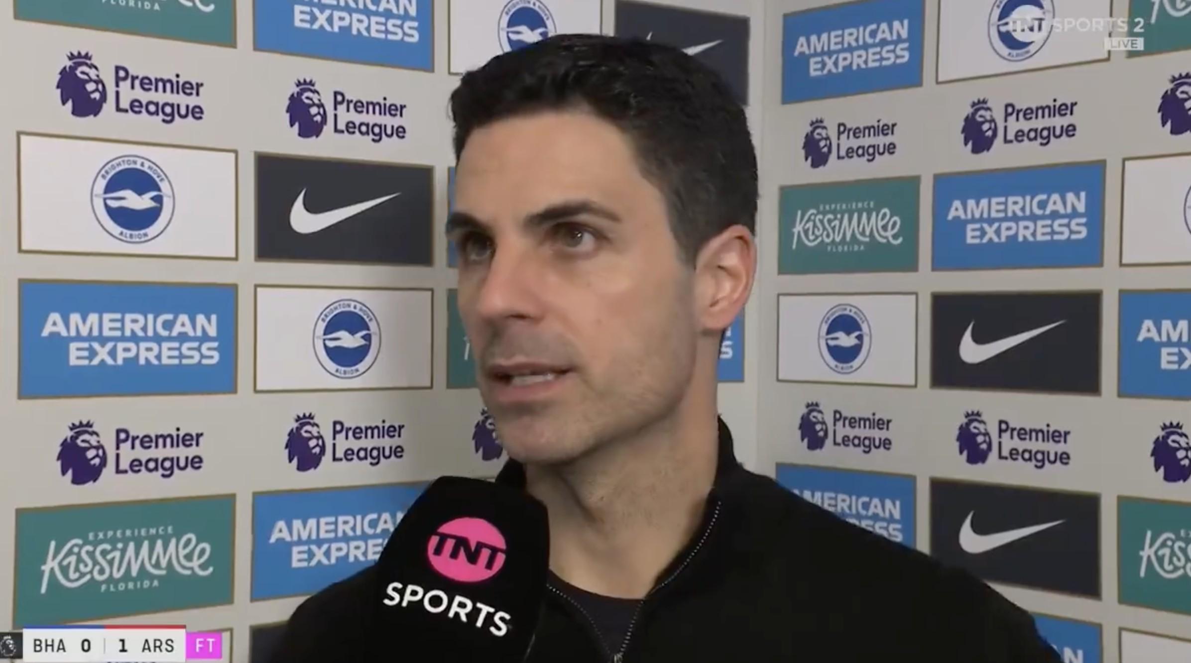 英超第29轮,阿森纳客场1-0击败布莱顿,赛后,枪手主帅阿尔特塔接受了TNT体育的采访。